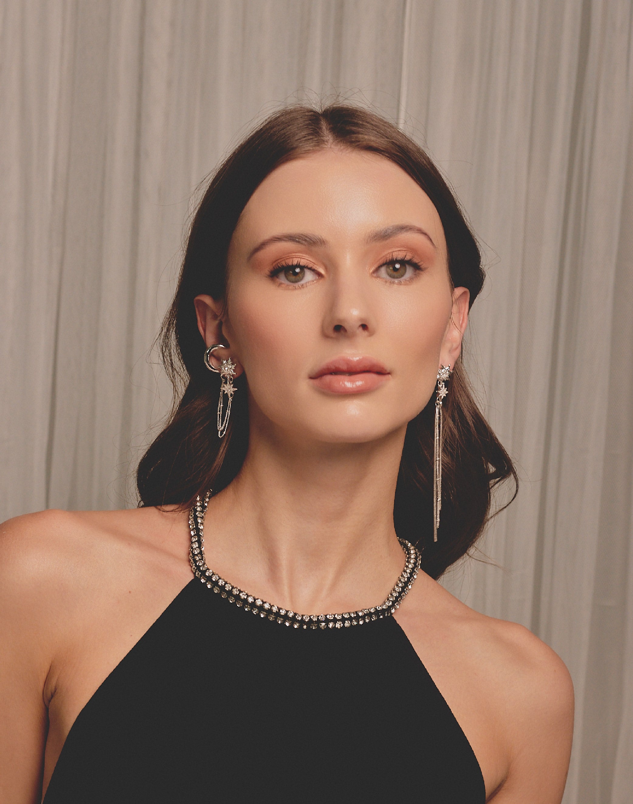 Descubre los Aretes Sunlight, un par asimétrico que ilumina tu look con detalle y originalidad. Una pieza combina un earcuff unido a una delicada cadena, mientras que la otra deja...