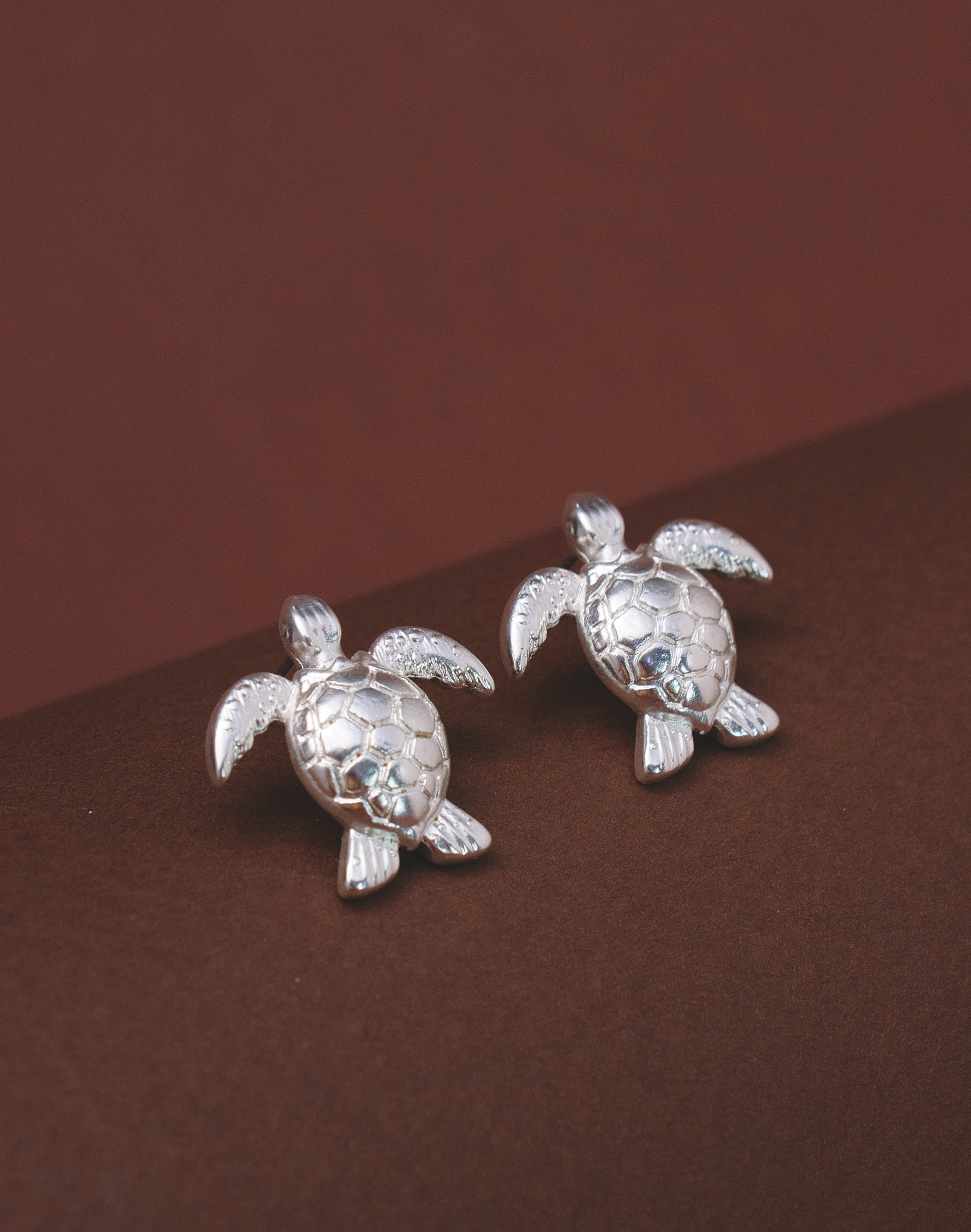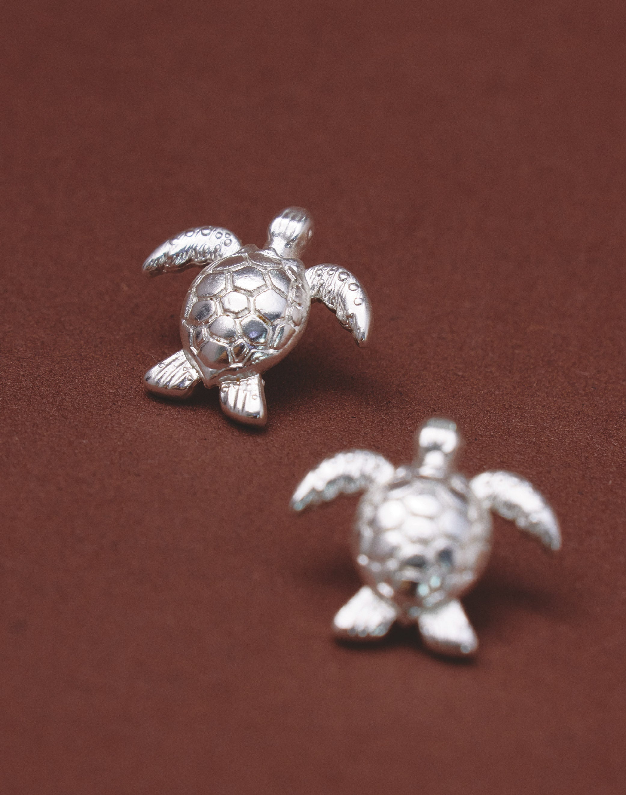 Inspirados en la tortuga carey, símbolo de sabiduría y conexión con el mar, estos aretes rinden homenaje a la vida marina del Pacífico colombiano. Su diseño sólido y detallado los convierte en una pieza protagonista, perfecta para llevar sola o combinar con otros aretes de la colección.