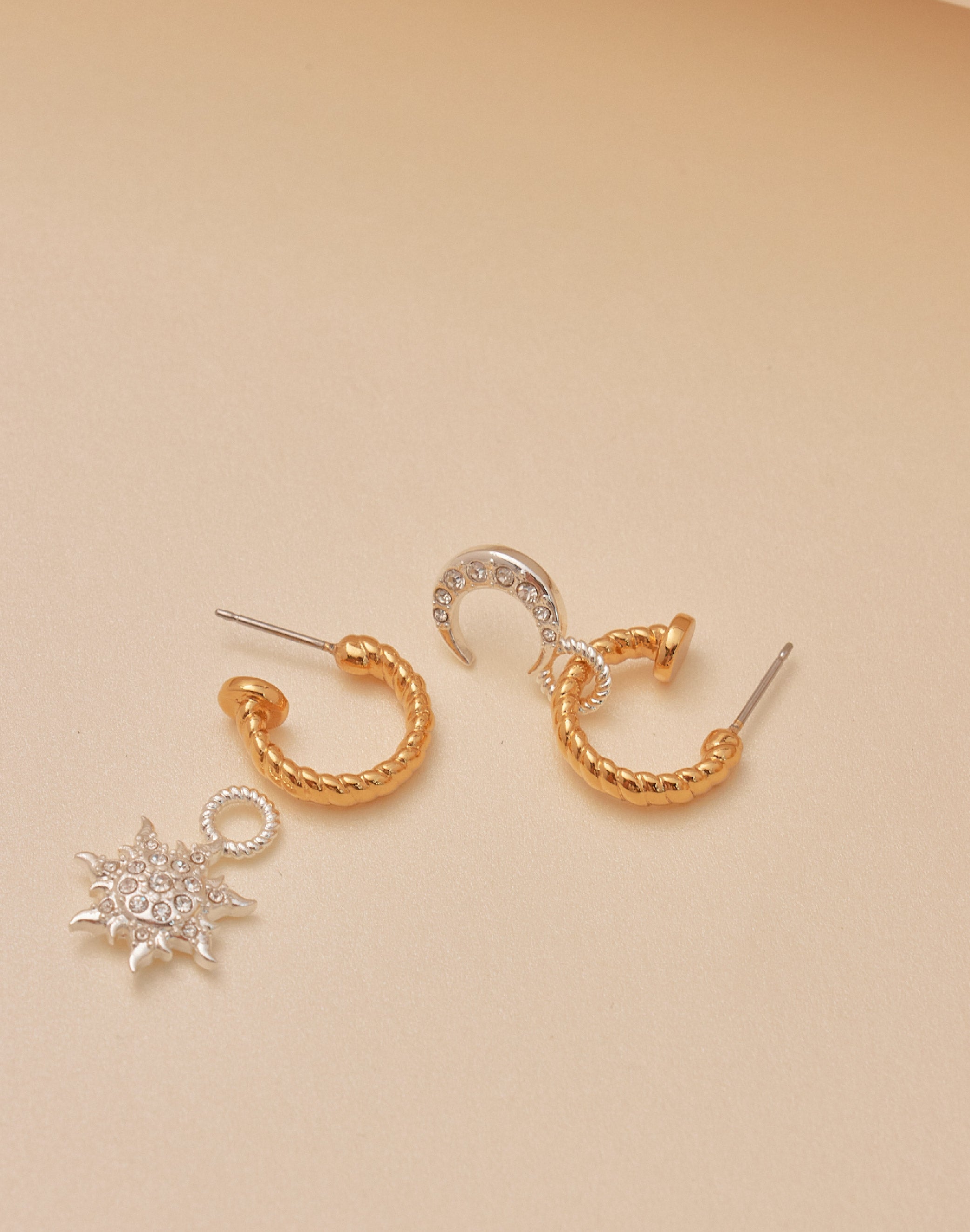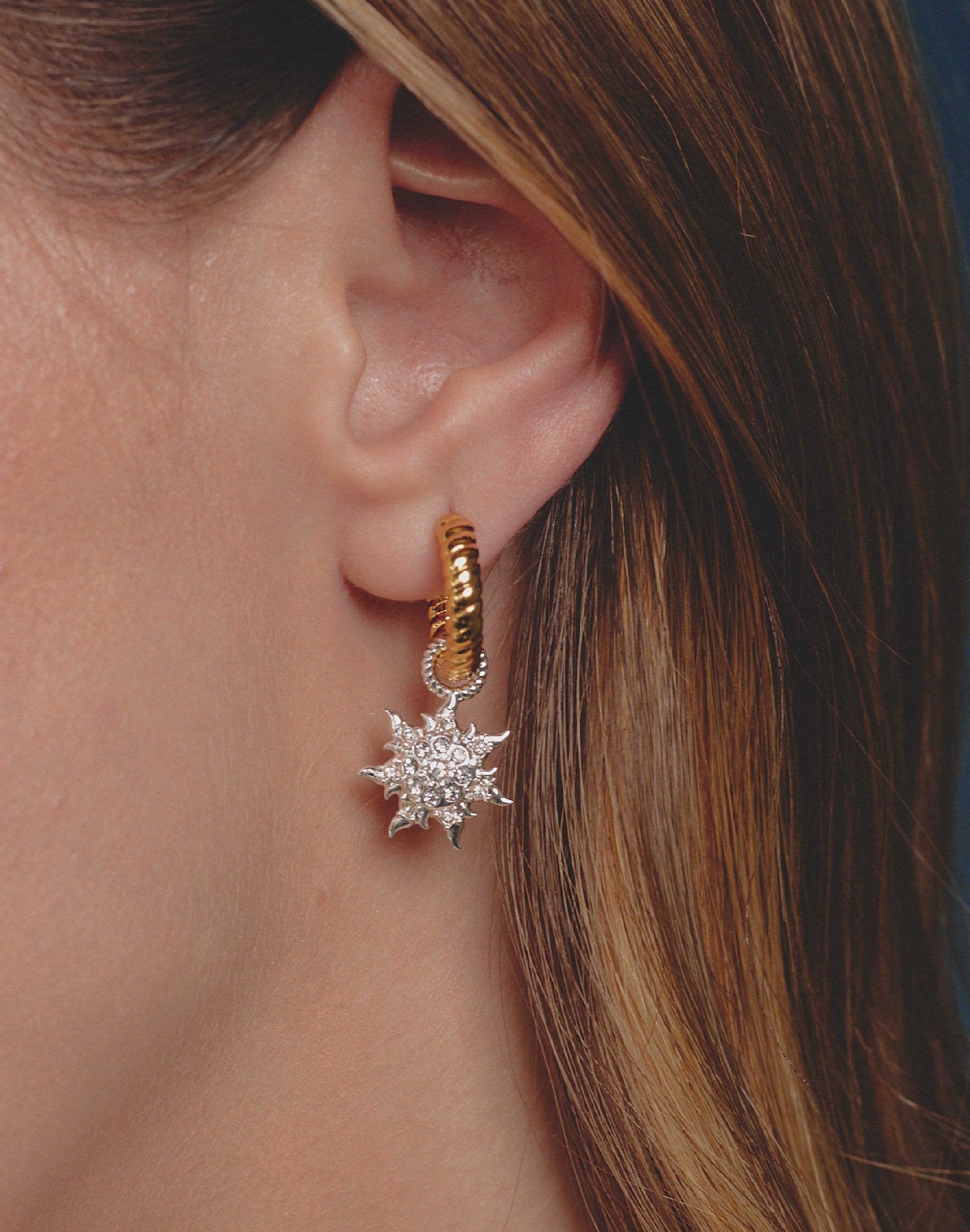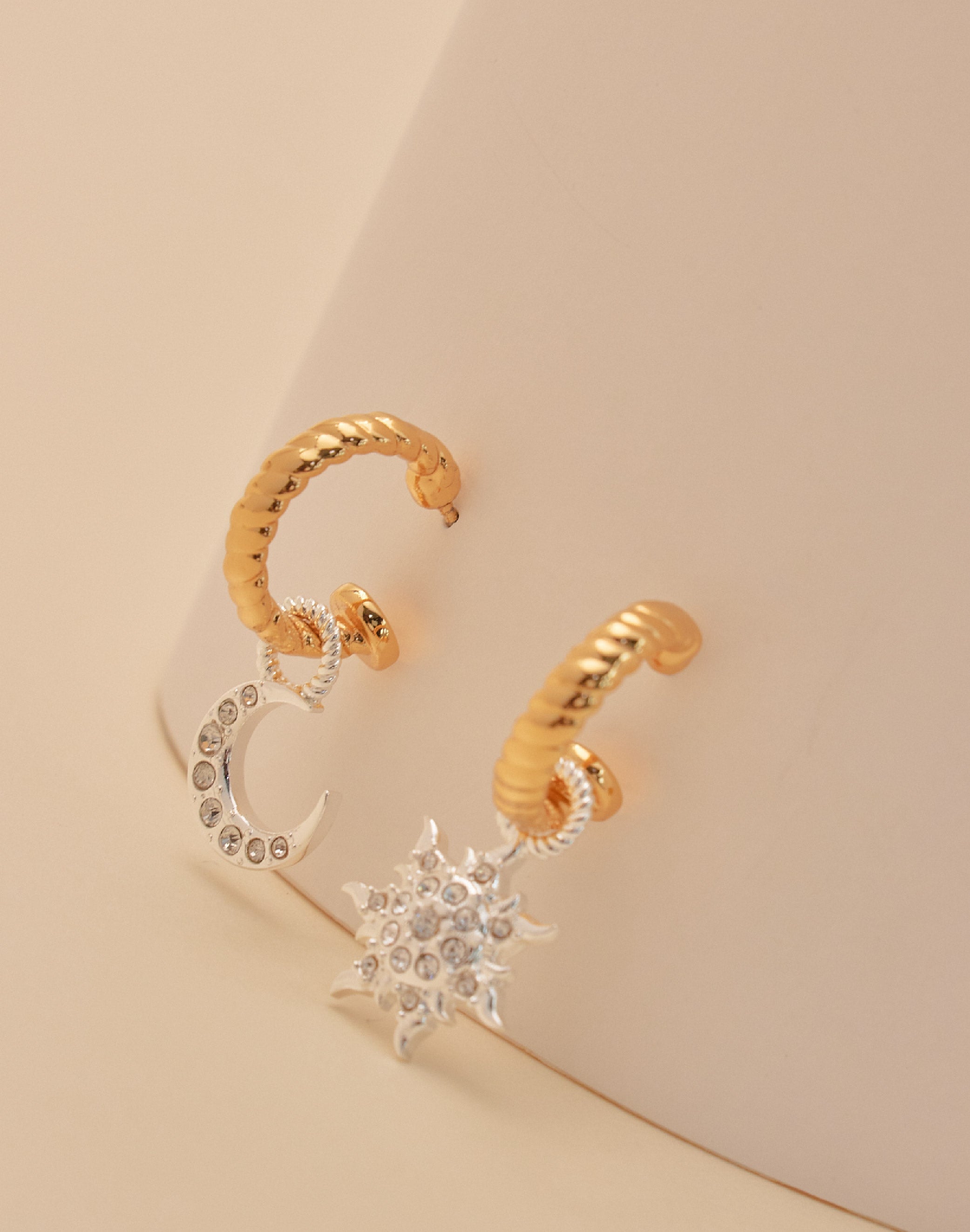 Estas candongas combinan el brillo del oro y la plata para un look único. Cada una lleva un dije removible: una estrella y una luna. Cambia los dijes cuando quieras...