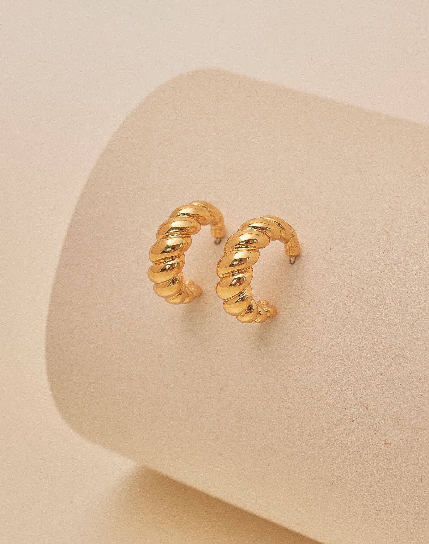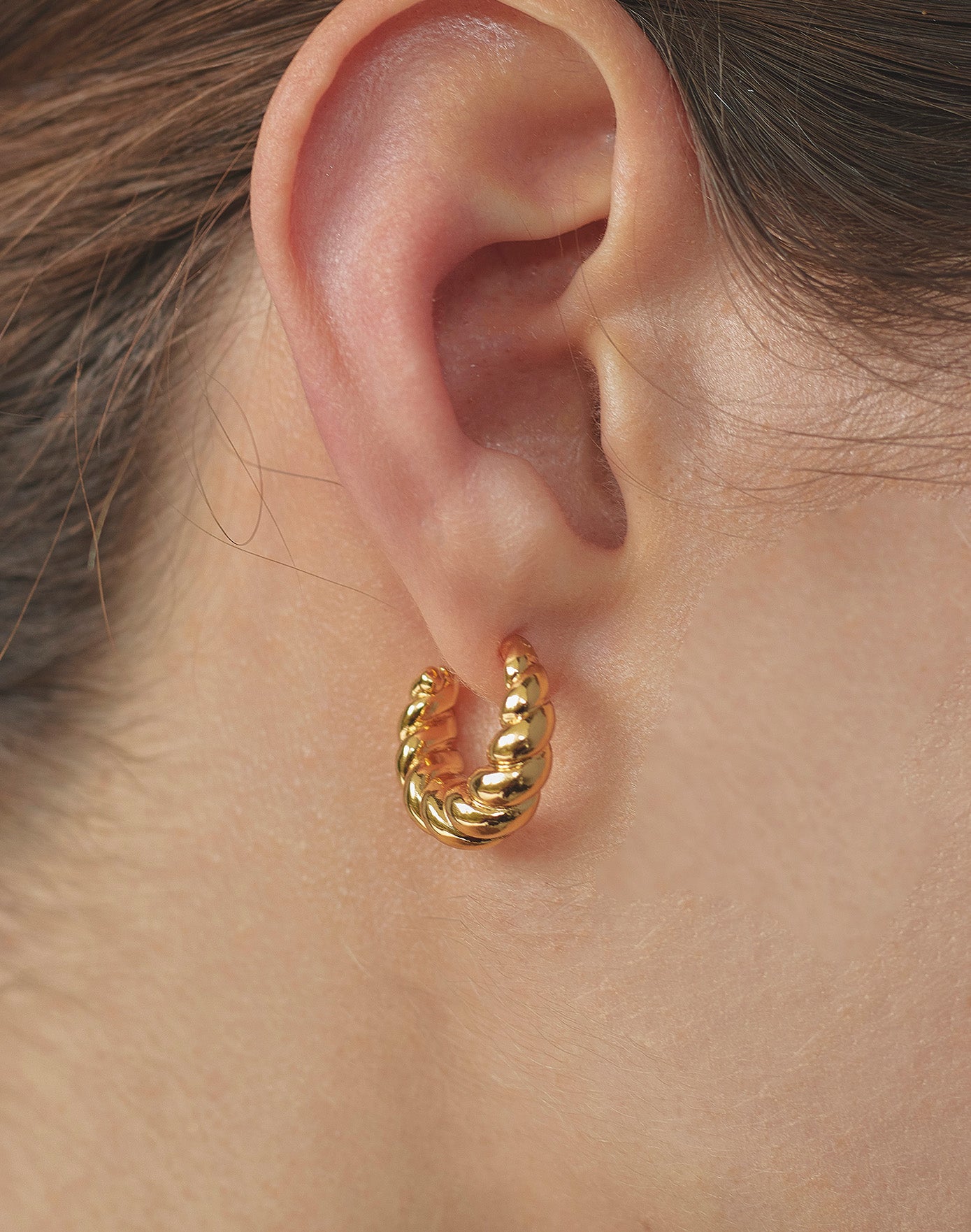 Las candongas Fidji destacan por su textura trenzada que evoca movimiento y sofisticación. Un diseño minimalista que aporta carácter y elegancia a los rituales del día a día.