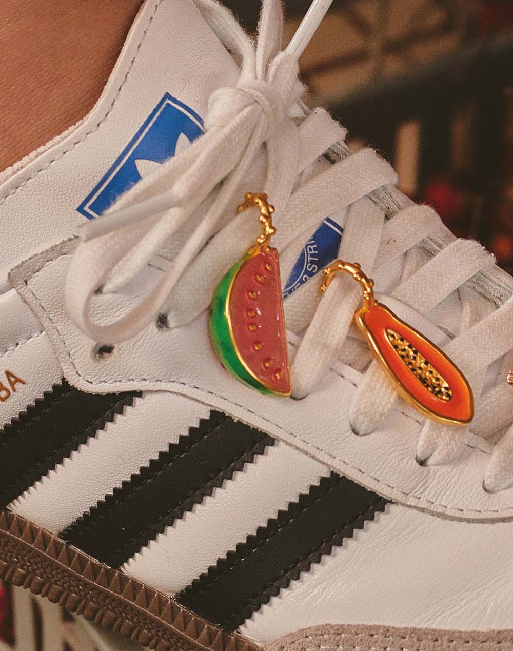 ¡Dale un toque divertido a tu look con nuestro Charm Papaya! Este charm de papaya está decorado con resina y es perfecto para usar en tus cordones de zapatos, pulseras...