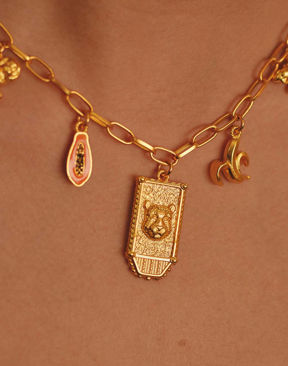 ¡Únete a la moda tropical con nuestro Collar + Aretes Del Trópico! Este set incluye un collar con diferentes charms y aretes de banano. ¡Úsalos juntos o por separado para un look fresco y divertido!