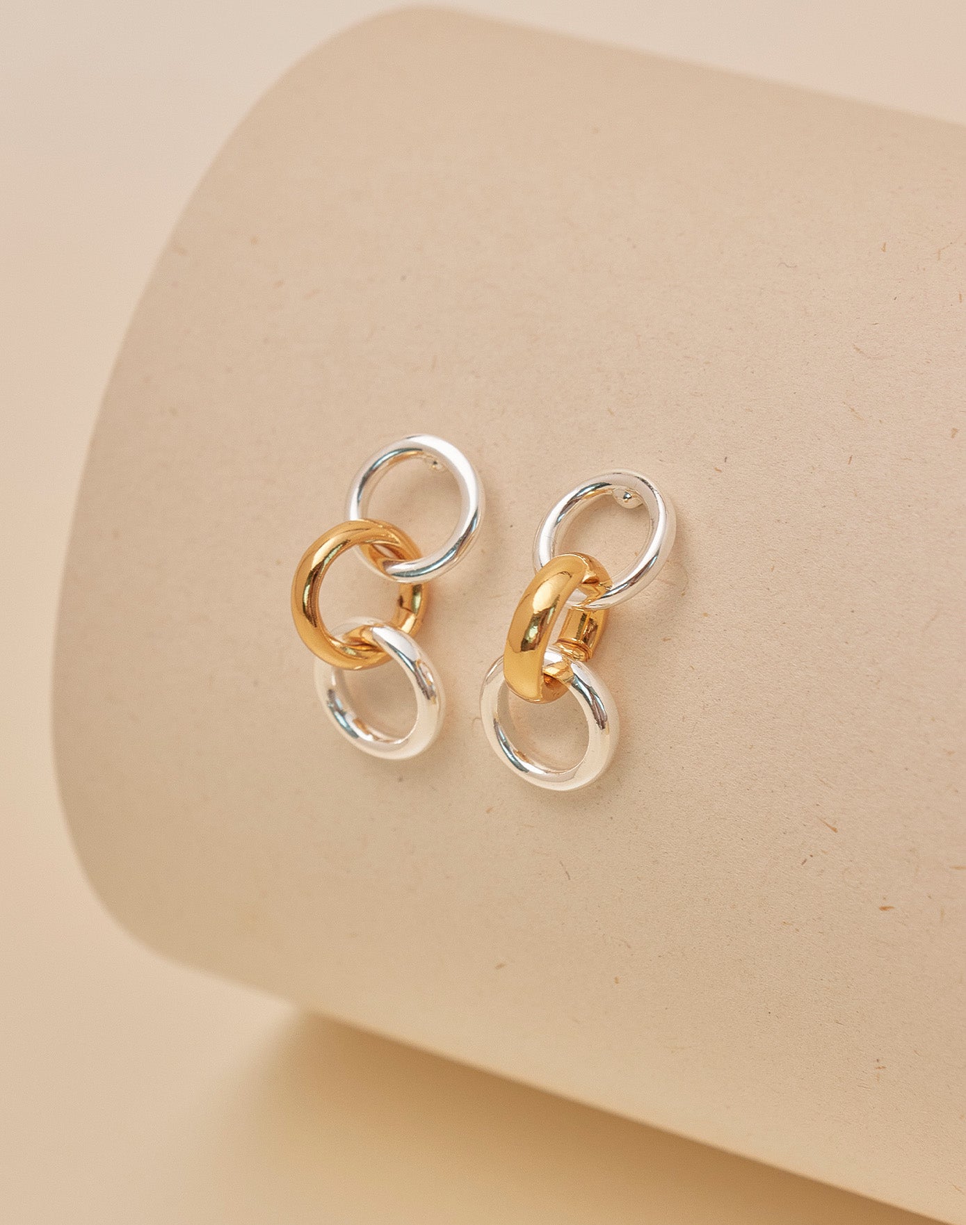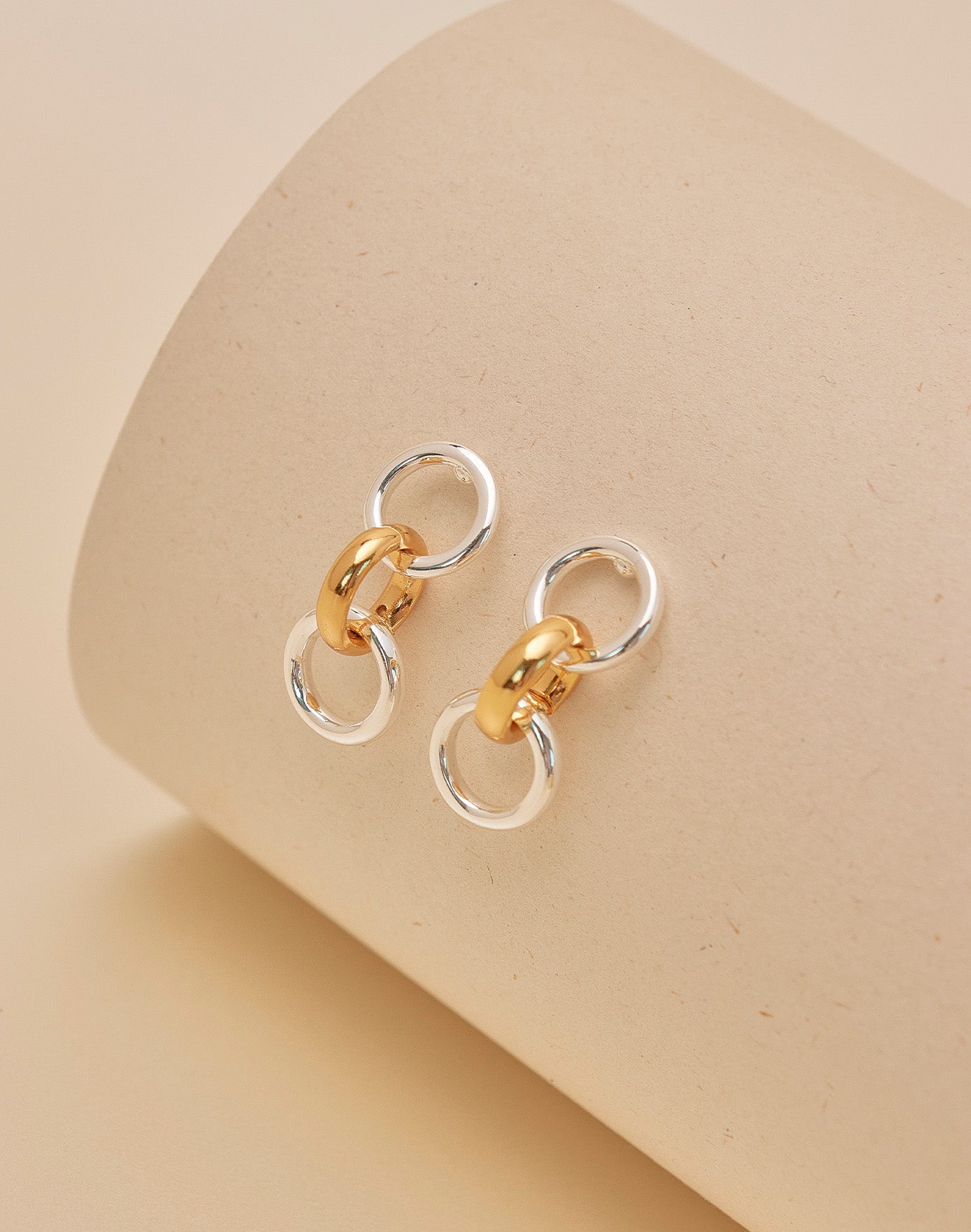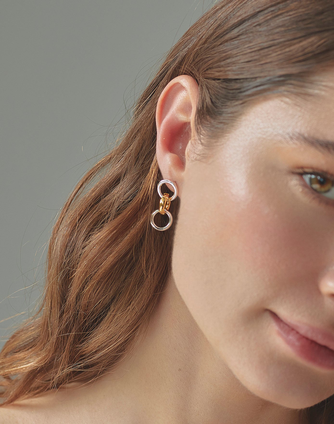 Los pendientes Dublín juegan con la armonía entre oro y plata, creando un contraste moderno y versátil. Una pieza contemporánea que aporta equilibrio y estilo a cualquier look.