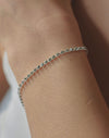 La pulsera Tennis es un clásico de elegancia atemporal. Sus cristales alineados crean un brillo continuo que ilumina la muñeca con sutileza, convirtiéndola en una pieza sofisticada para todos los días.