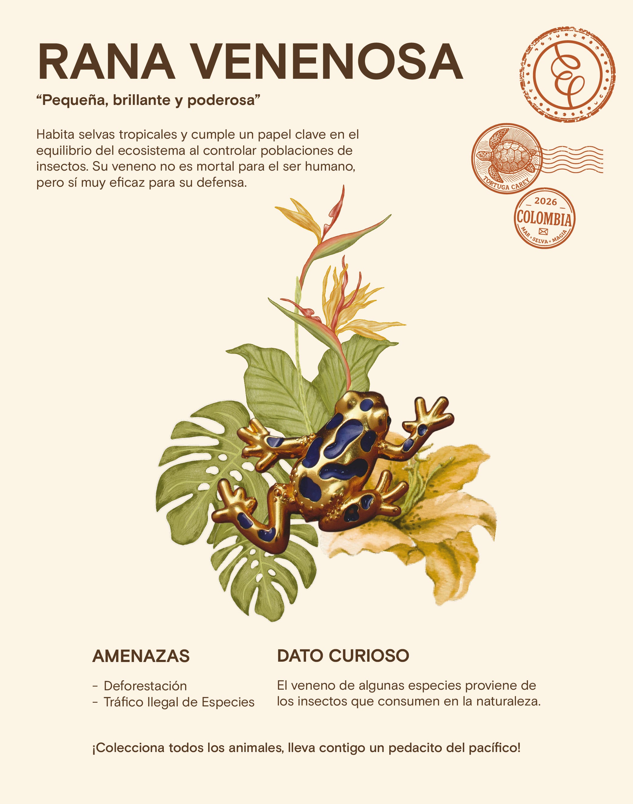 Cada pieza representa una especie emblemática del Pacífico colombiano, combinando color, detalle y simbolismo. Ideales para personalizar prendas, bolsos o accesorios. Especificaciones: Baño en Oro de 24k Incluye 3 pines...